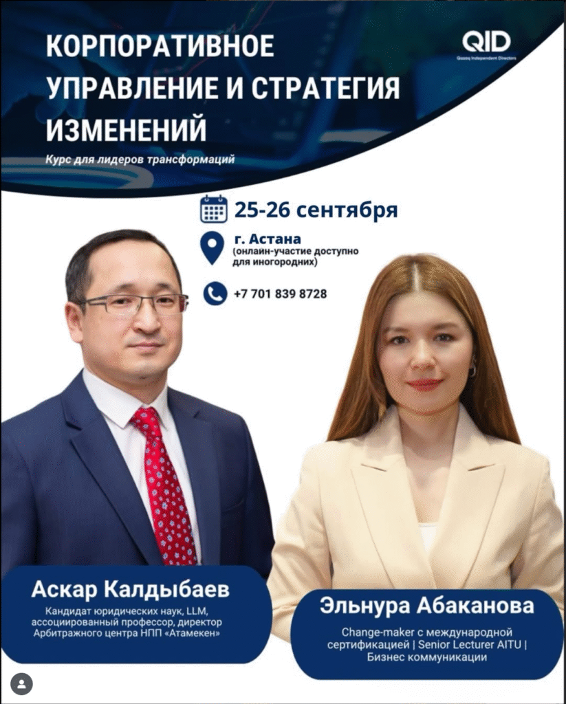 Спикер: Аскар Калдыбаев — кандидат юридических наук, LLM, ассоциированный профессор, директор Арбитражного центра НПП «Атамекен»