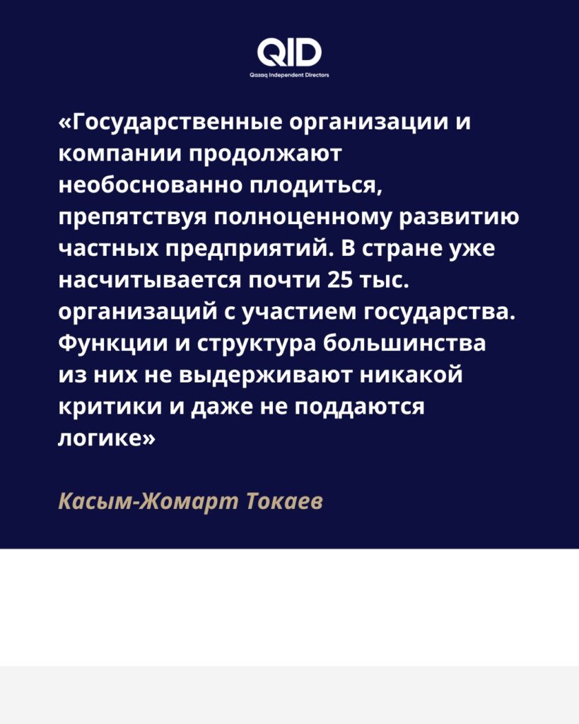 Касым-Жомарт Кемелулы: «Мемлекеттік уйымдар мен компаниялар орынсыз кобейіп, жеке сектордын толыкканды дамуына кедергі келтіруде. Елде мемлекет