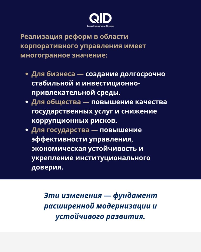 Корпоративтік баскаруды реформалау барлык тарап ушін манызды: