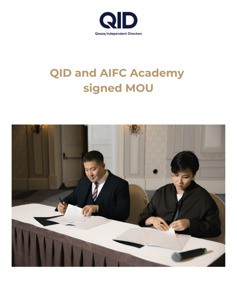On September 26, 2025, within the framework of the Kazakhstan Legal Forum, a Memorandum of Cooperation was signed between QID and the AIFC Academy.