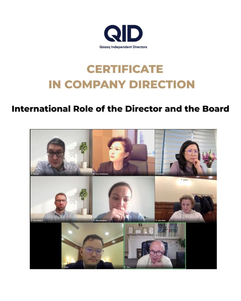 28 қарашада Астанада Certificate in Company Direction бағдарламасы ресми түрде басталды. Бағдарлама Qazaq Independent Directors Association және Institute of Directors серіктестігі аясында іске қосылды.