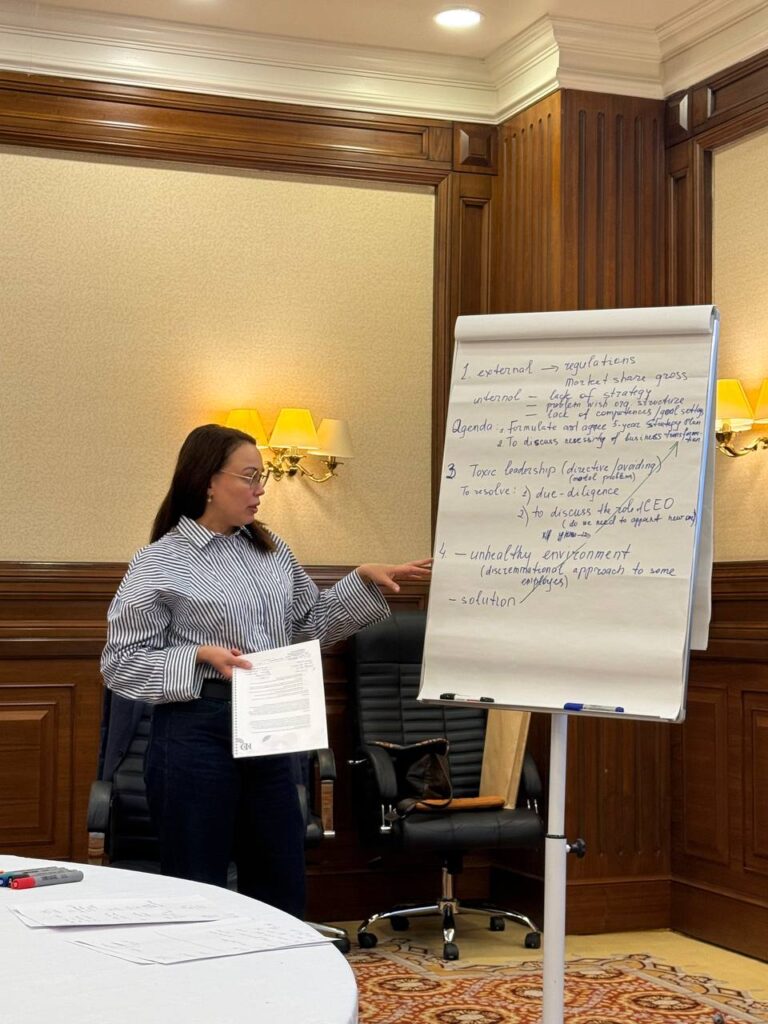 The Leadership module within the Certificate in Company Direction programme was successfully completed on 1 December in Astana. Participants concluded their exploration of effective board-level leadership through an interactive format based on real cases and peer discussions.